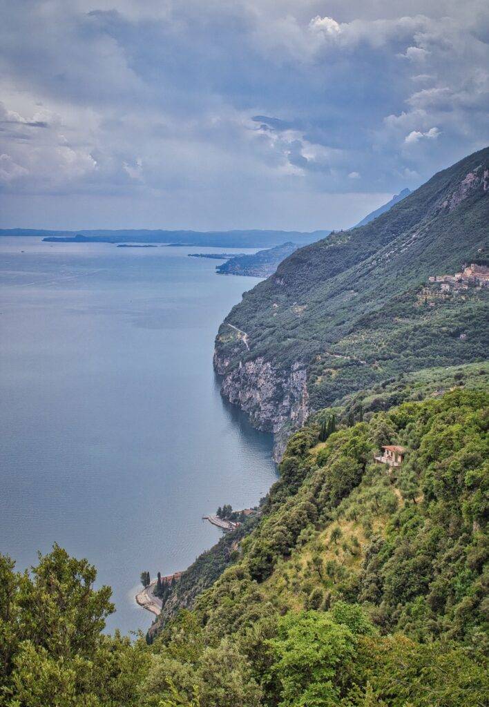 V plánu bylo vyrazit opět přes Limone sul Garda a tam odbočit na pobřežní silnici SS45bis, která vás dovede až na jih jezera. Cestou si tedy vychutnáte pohled na celé jezero. Zajímavostí je, jak se okolní krajina směrem na jih pomalu mění v nekonečnou rovinu, a tím vlastně končí Alpy.