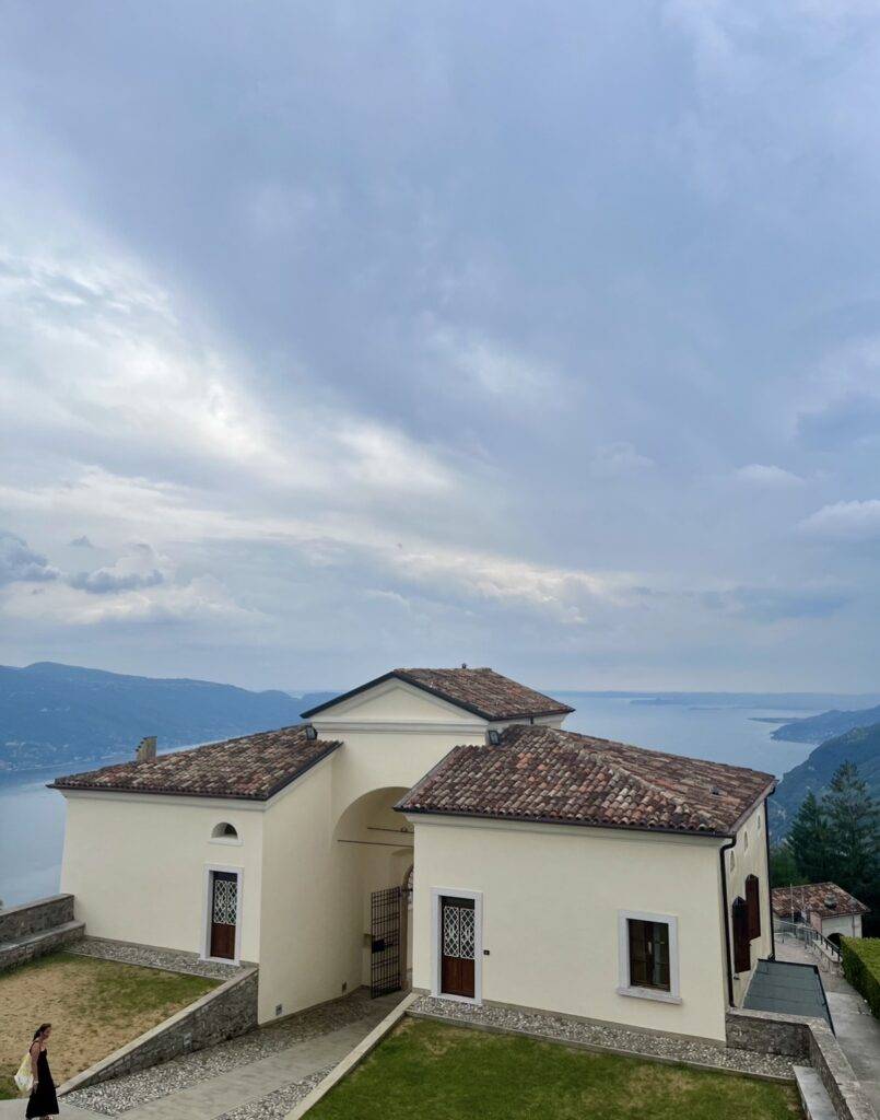 Přímo nad touto vyhlídkou je však ještě zajímavější místo. Kostel Madonna di Montecastello nabízí ještě lepší výhled a také cesta k němu je velmi dobrodružná. Autem je možné dojet až nahoru (což jsme nevěděli), nicméně je to asi nejprudší silnice/ulice, kterou jsem zatím zažil. Místo chodníku jsou tam dokonce schody, takže pokud potkáte auto v protisměru a budete muset zastavit, rozjíždění bude velmi zajímavé. My jsme se nahoru vydali pěšky, což nám po hodinách sezení v autě úplně prospělo.