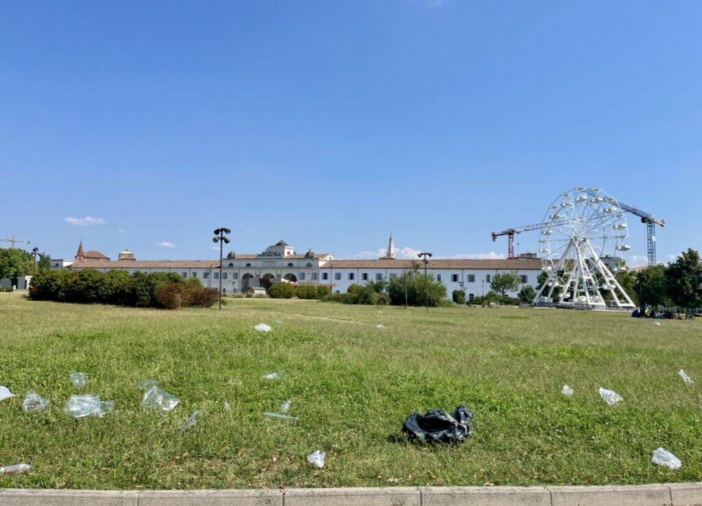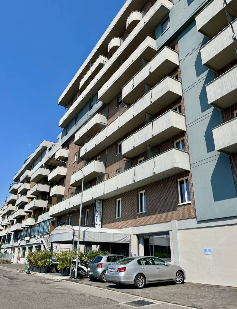Zde jsme se ubytovali a vyrazili pěšky na druhou stranu centra – konkrétně kam jinam než do Enzo Ferrari Museum. Pěšky to byla půlhodinová cesta s mnoha méně hezkými zážitky. Tato část města nebyla úplně nejčistší a ani nepůsobila úplně bezpečně. V nedalekém parku se válely haldy odpadků a po obrubnících posedávali poněkud pochybní lidé.