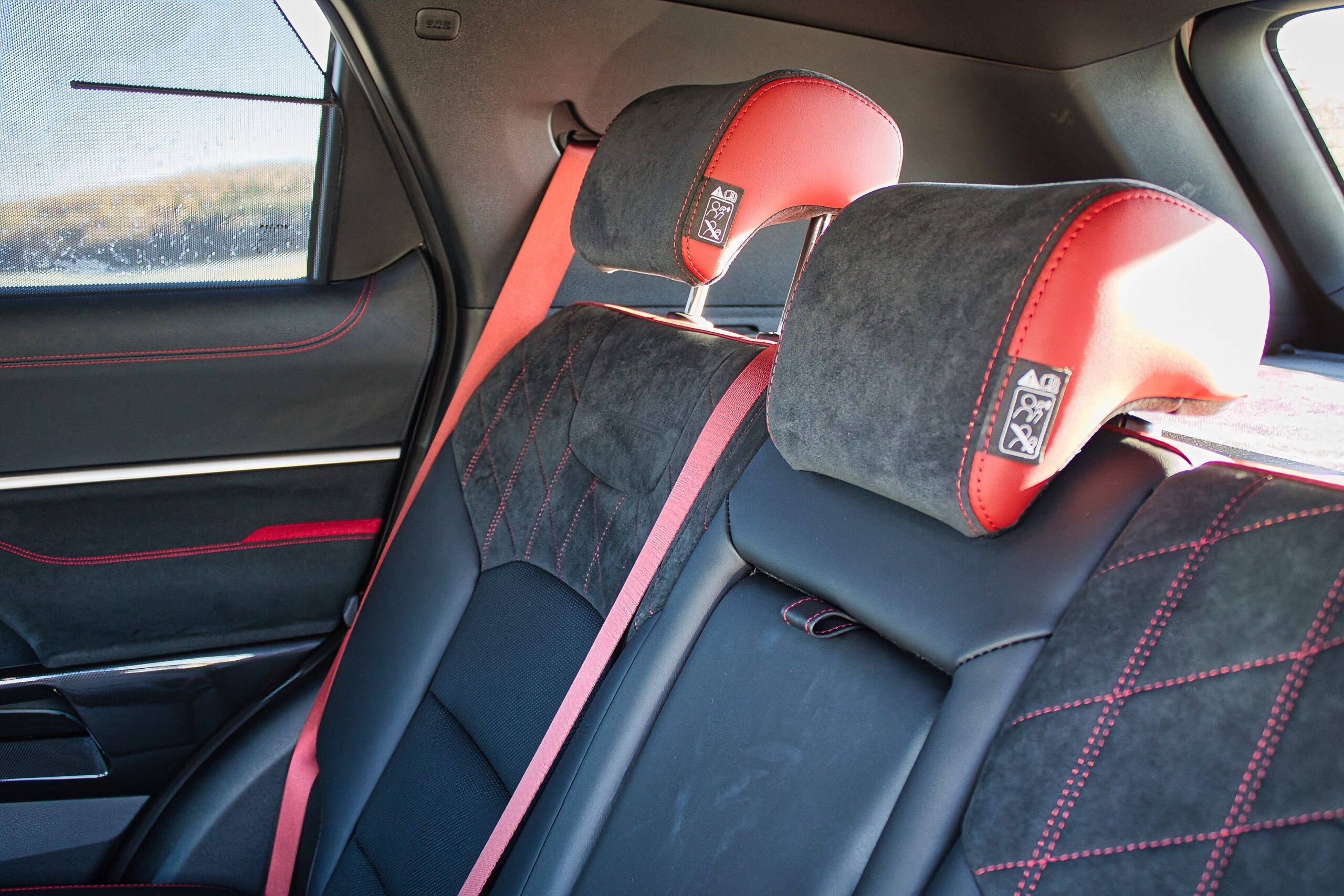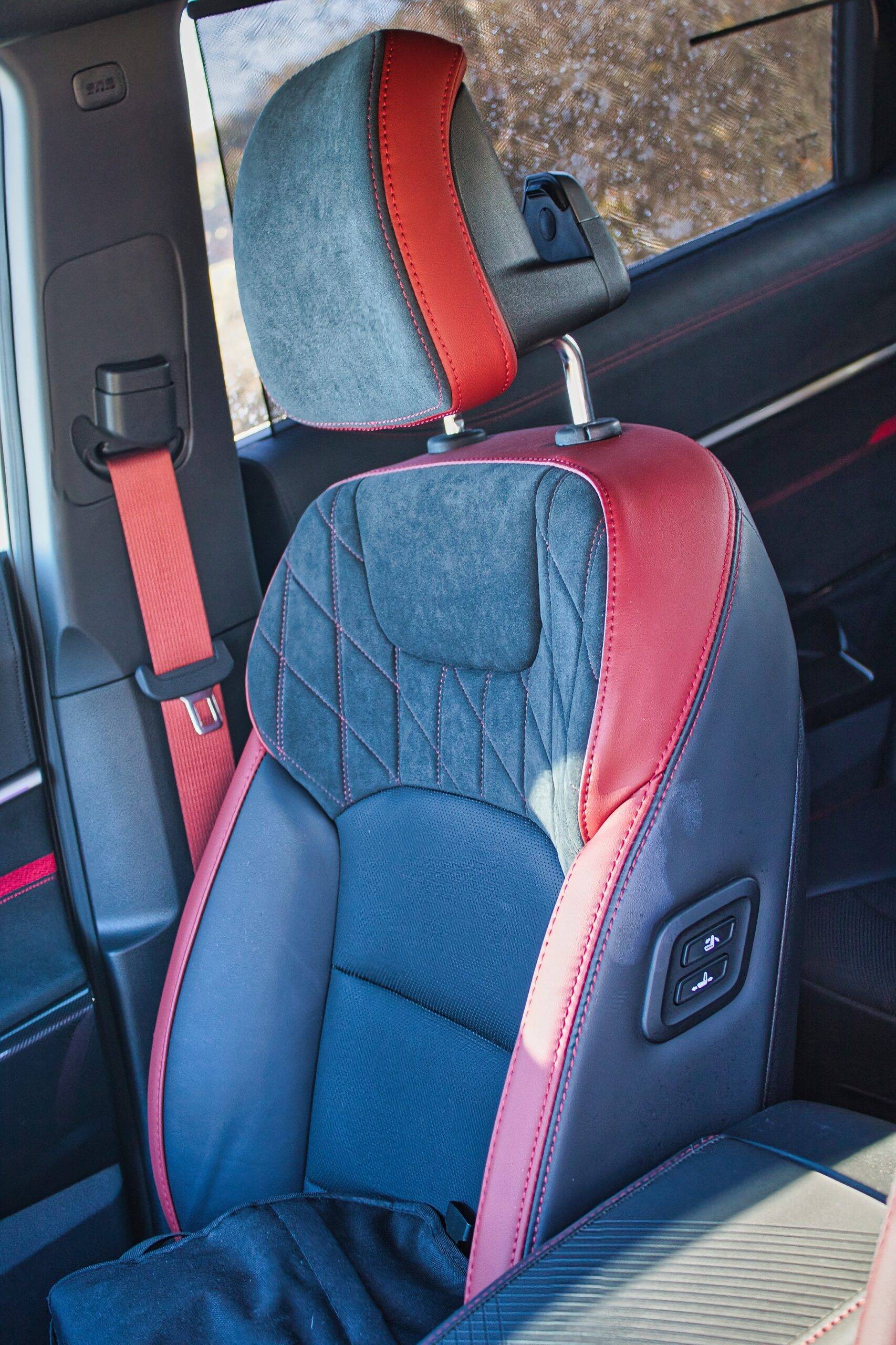 Testovaný černo-červený interiér byl v mnoha ohledech překvapivě zajímavý. Zahrnoval například červené bezpečnostní pásy a semišové detaily na výplních dveří i dalších částech interiéru. Přiznávám, že červené interiéry obecně moc nemusím, ale v téhle umírněné kombinaci na mě působil velmi dobře – a jinou variantu bych vlastně ani nechtěl. V kombinaci s bílo-černým exteriérem vznikla velmi vkusná konfigurace, která mi vyloženě sedla.