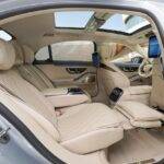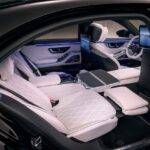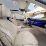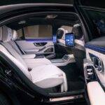 Vzadu pak čekají 13,1” displeje v opěradlech, možnost videokonferencí přes Microsoft Teams, standardní audiosystém Burmester 3D, stolek a samozřejmě maximální komfort včetně relaxační polohy sedadel.